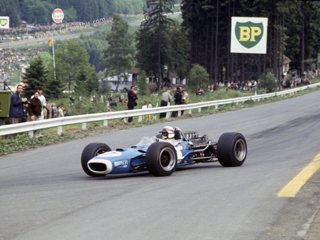 Jackie Stewart, Matra MS10, 1968 Belgian GP [1600×1067] (from a post in /r/formula1)